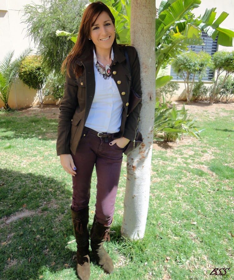 Hola que tal??? Terminada la semana festiva os presento un look con aire militar y además uno de los que "creo", últimos que veréis con botas altas adiós botas por fin!!!! Esta chaqueta es una de mis favoritas y no quería pasar esta primavera sin que la vierais ya que me parece una opción perfecta para las mañanas más frescas y así olvidarme ya de los abrigos. De nuevo mis pantalones encerados y mi águila en otro de mis looks y es que este collar se ha convertido ya en un acompañante perfecto tan bonito y calladito jaaajaa Os deseo un feliz comienzo de semana no sin antes agradeceros vuestras visitas y comentarios, sois fabulosos!!!!Un bsazo amores