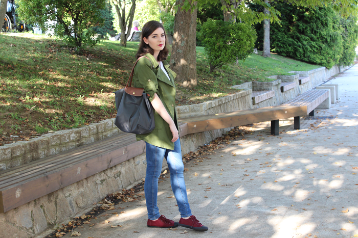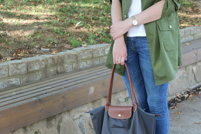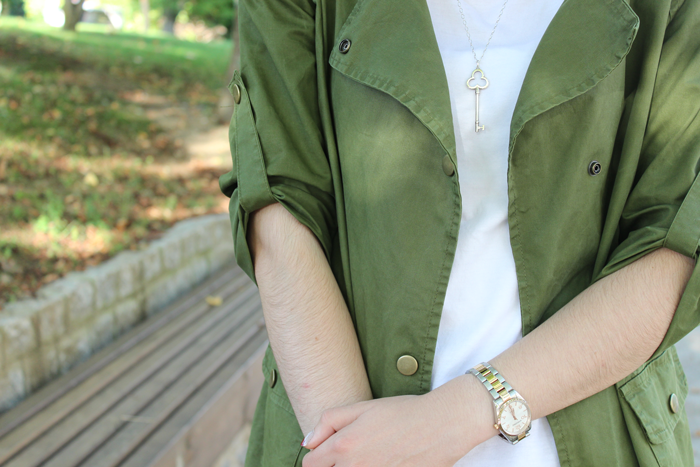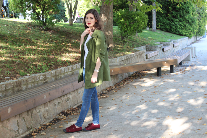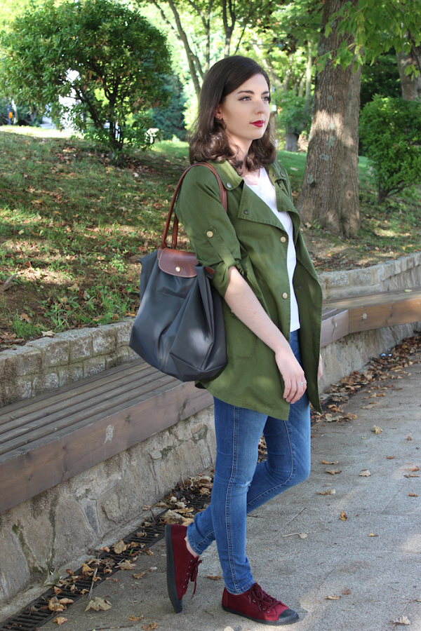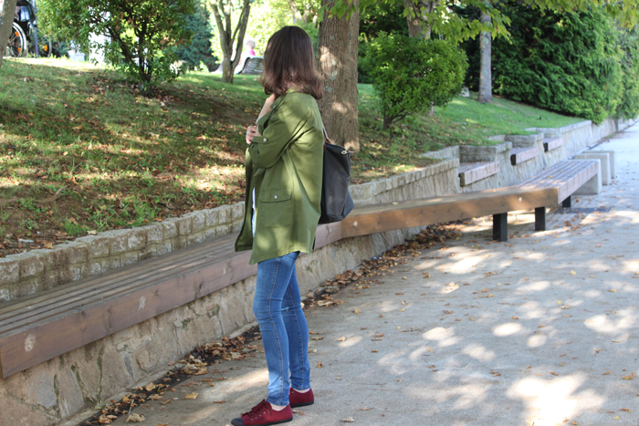 Aprovechando que aún tenemos días de sol y bastante calorcito decidí estrenar esta parka de Blackfive, con un look muy sencillo y cómodo para ir a clase.