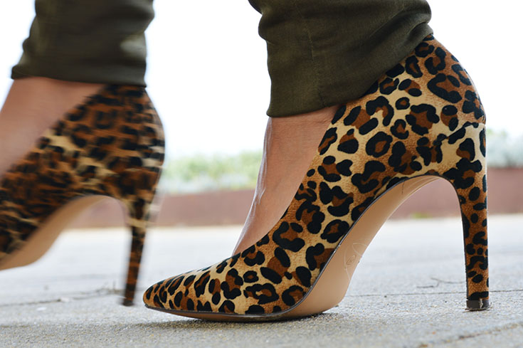 We usually think that some colours, as for example military green and light pink, don’t combine at all. But he result may surprise you. We often wear military green combined with basics in neutral colours, but pastel pink gives a different touch to the classic combo and it´s a perfect option in order to avoid getting bored of it. If we also add animal printed heels we´ll get a more personal outfit. I hope you like it.
