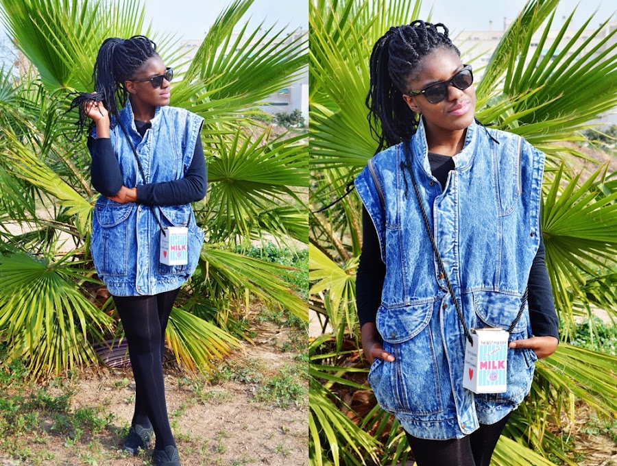 y así me pasó con este pequeño, maravilloso y encantador bolso de cartón de leche (obvio no es de cartón jaja). Llevaba ya mucho tiempo buscándolo y sobre todo comparando precios y al final me decanté por Aliexpress y no me arrepiento para nada. Junto a este bolso también me compré el de Palomitas, que os enseñé AQUÍ.Sin duda la otra pieza clave es este enorme chaleco de Nakamura que conseguí en Carril de las Palmeras. Cuando me invitaron a la apertura de la tienda me lo probé y supe que tenía que ser mío, hoy os lo enseño como vestido pero quedan muchos outfits por aquí con este chaleco.