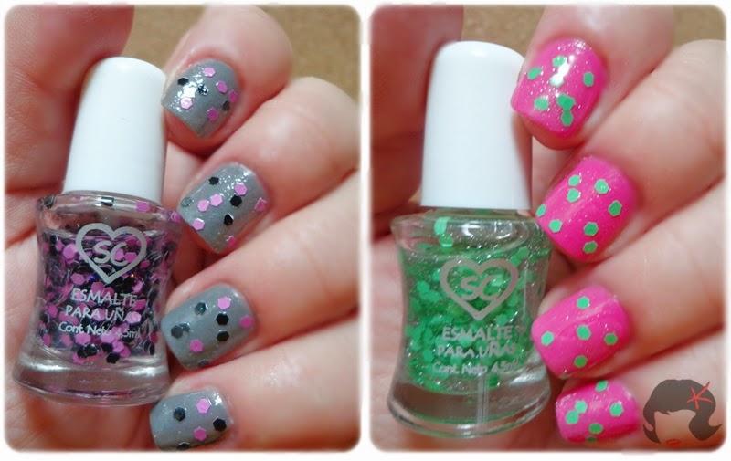 Dejando de lado el tema del tamaño les cuento que ambos tienen microglitters holográficos dispersos que en el verde se notan más.