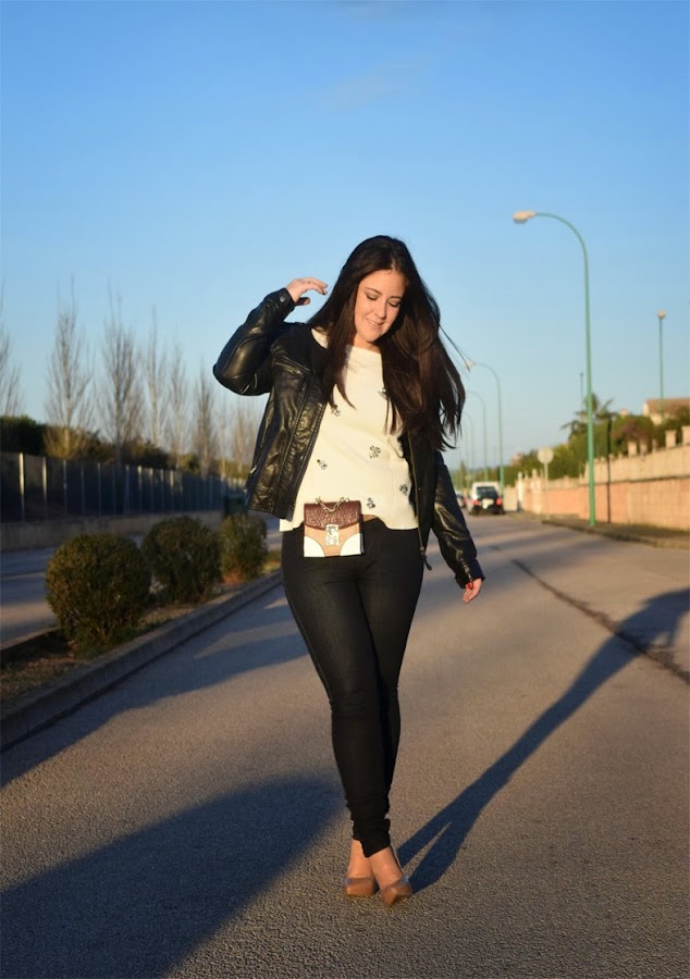 Good Morning !! We start the week and it"s less to finish the month, the month of parties, family meals, thoughts of diets and new purposes for the bikini operation and return to routine ... but look on the bright side of things, ALWAYS! The look that I will show today I particularly like because it"s a basic look but with the chosen accessories gives a different air. This bag is from sales, I had wanted one since time ago, It"s very small and hardly fit anything ... it"s funny, increasingly smaller bags and larger phones, not how we are going to do hahaha. I hope you have a great week and enjoy the photos and look today. HAPPY MONDAY!