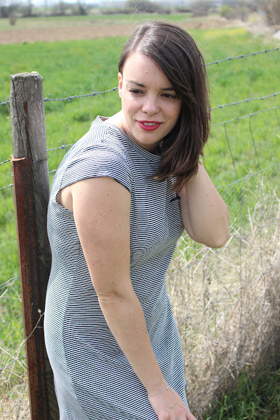 La tela es como una camiseta, con textura tipo jersey muy fino y no da calor, jolin si es que me gusta un montón.