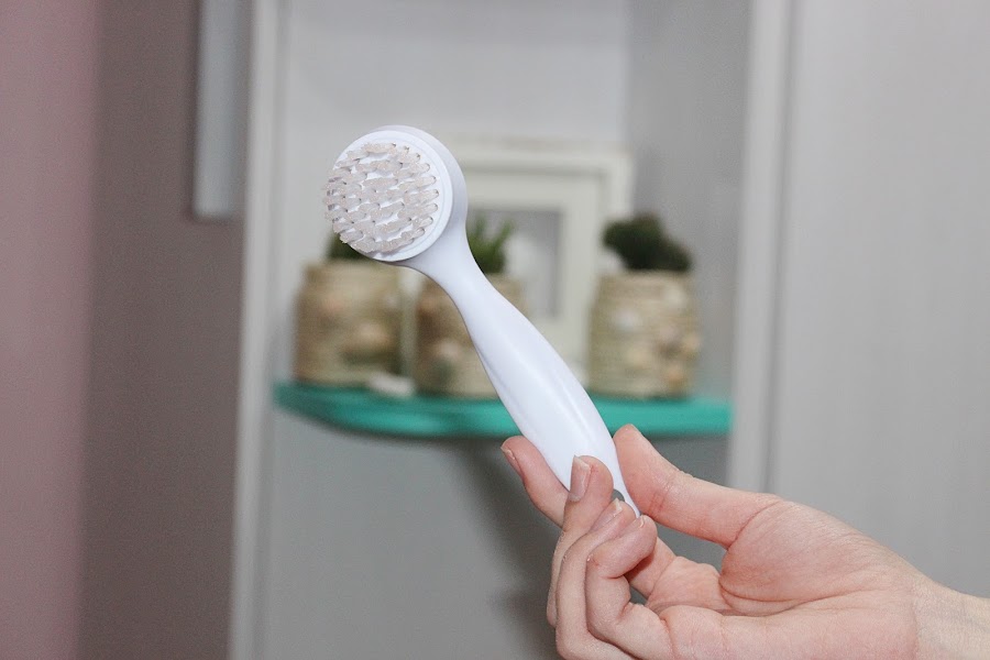 Este cepillo tiene la cualidad de que por delante limpia y por la parte de atrás sirve para dar masajes faciales.
