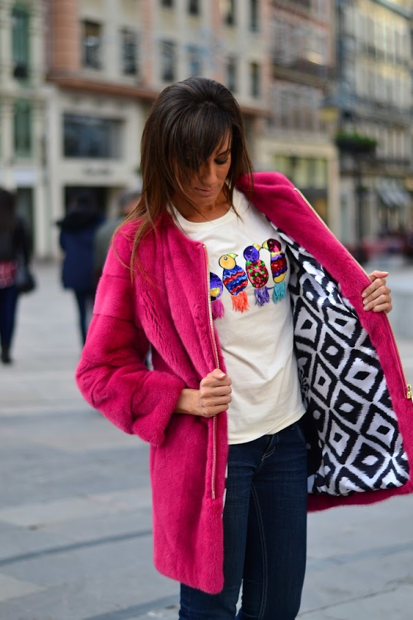 Hoy, primer día del año, me gustaría empezar el 2016 compartiendo con todas vosotras cómo quiero ver la vida de ahora en adelante: de color de rosa. Y qué mejor que hacerlo vistiéndome de fucsia con este espectacular chaquetón de visón de Italia Piel, tan chic, muy en la línea de Saint Laurent.