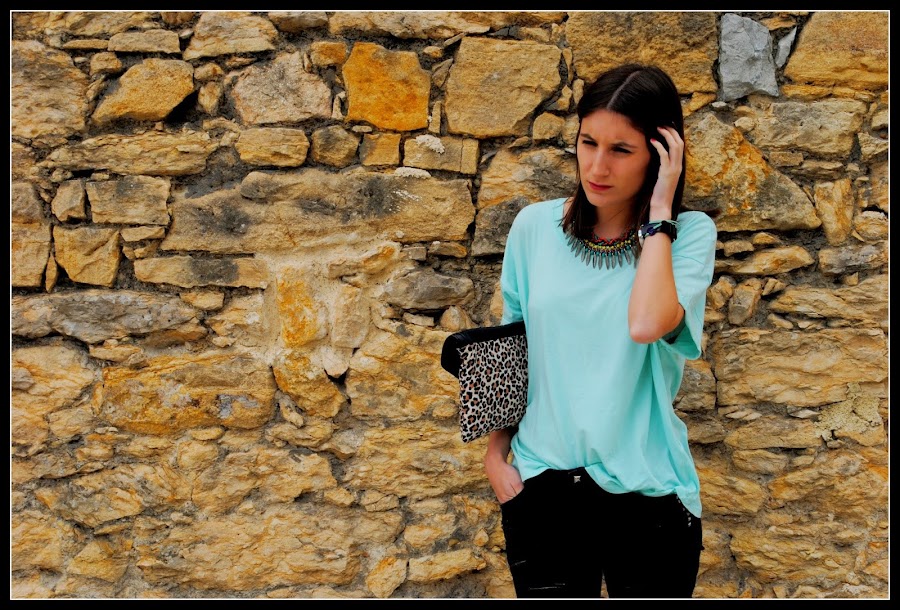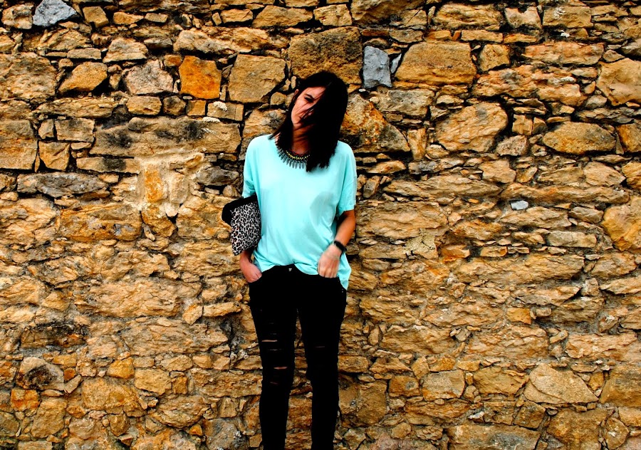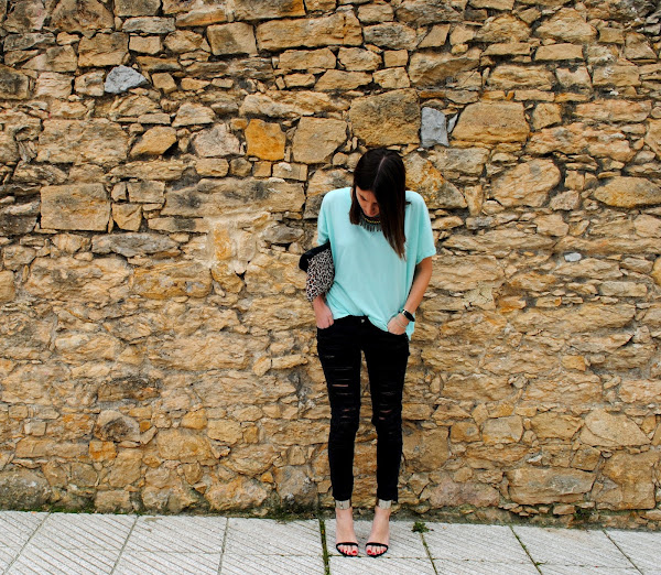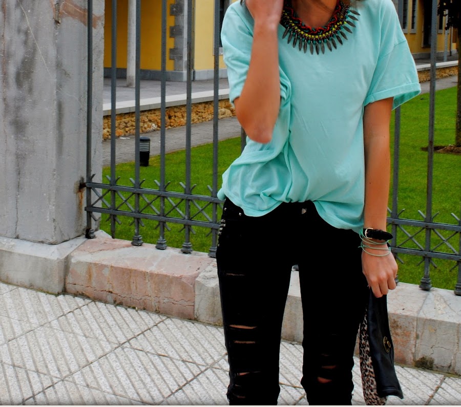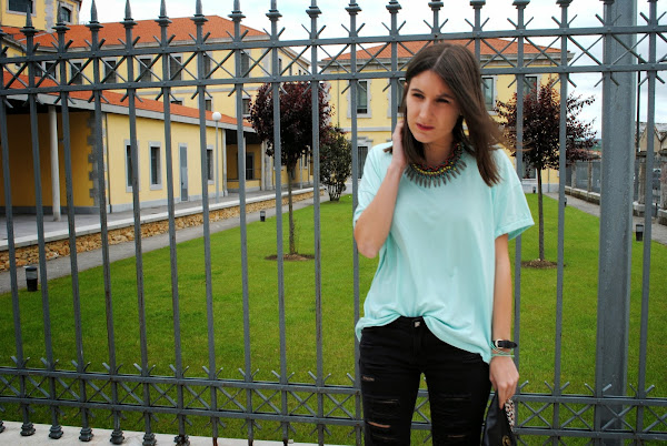 Hi Tuesday, here we go!! Few days ago I showed you my ripped pants with a very rock look, but today I decided to create a look more sweet, so I combined this pants with my mint t-shirt, I guess you know that this color is trend of Spring and I"m happy! It"s one of my favorites colors for many reasons, is cheerful, elegant and flattering. I also added necklace and sandals that I showed you in the previous post.