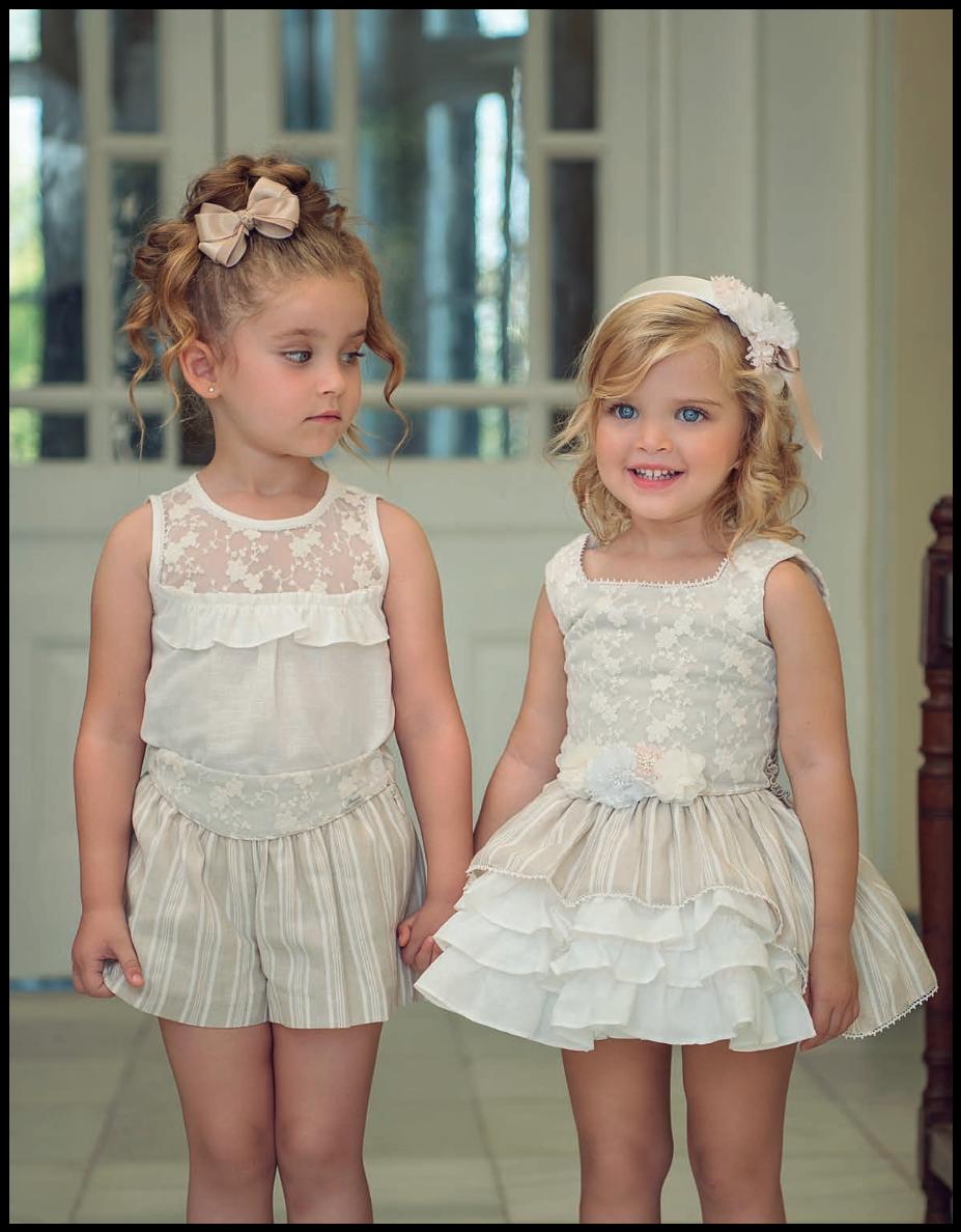 Otro tipo de colección que no falta en esta firma es la de ceremonia. Vestidos delicados y confeccionados con mucho mimo en tonos crudos, rosas y azules empolvados, y que en muchos casos se pueden coordinar a los diferentes hermanos.