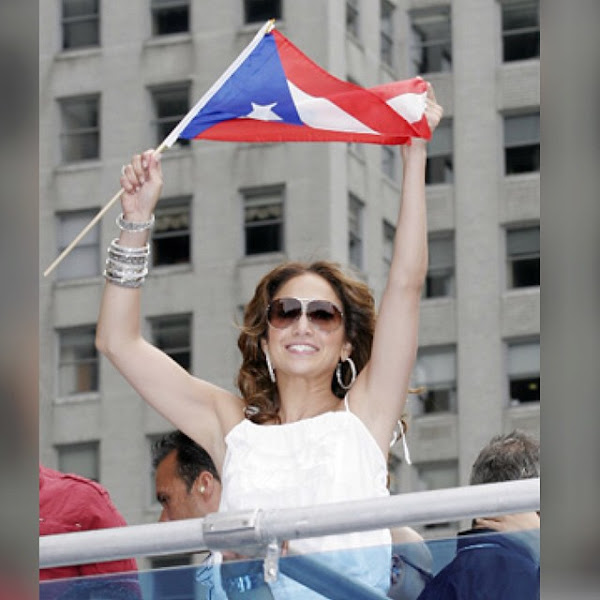 Jlo no se averguenza de su sangre puertorriqueña.Aqui en la parada de NY.