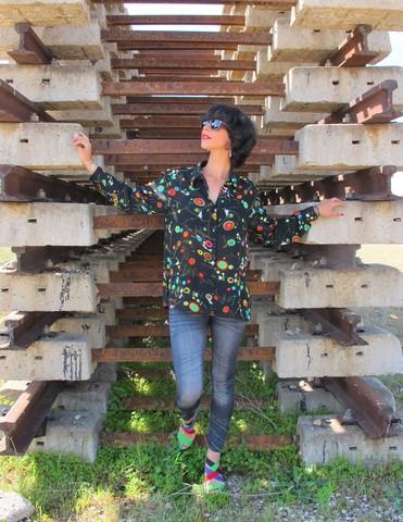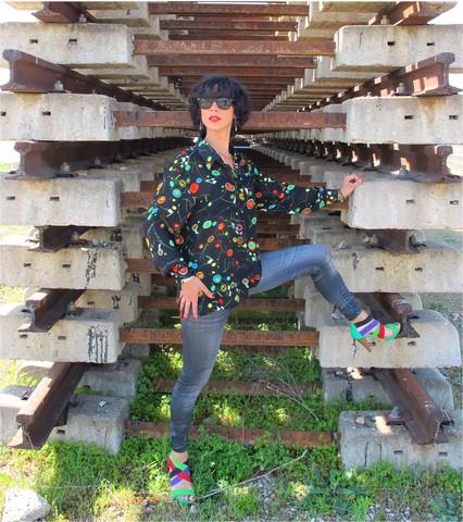 Me encanta la Blusa de Picos Pardos Vintage, nada más verla en su Facebook pedí que me la reservaran porque vuelan y tuve la suerte de hacerme con ella. Recuerda a las pinturas de Miro, la camisa es un tanto horterilla y muy llamativa pero por eso mismo me decidí a comprarla. Me fascina!!