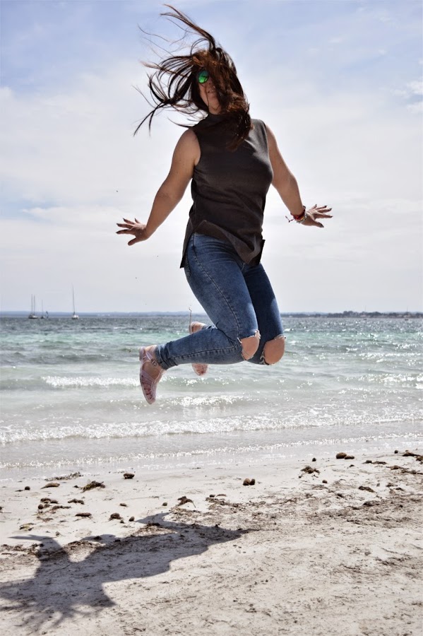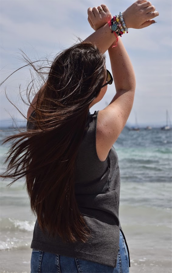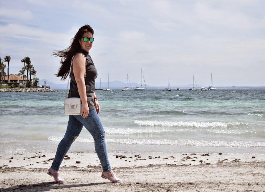 Good morning!! When I go to the beach I only think to wear my plastic summer shoes, remember me the summer, the sun, the beach... the best time of the year! And this time I didn"t hesitate one second! Otherwise, there are basic clothes that I combined with my green mirrored sunnies and white mini bag. I hope you like it and can enjoy a littles of the beaches so beautiful like this, although it isn"t the best of the island... Happy Thurs-friday!