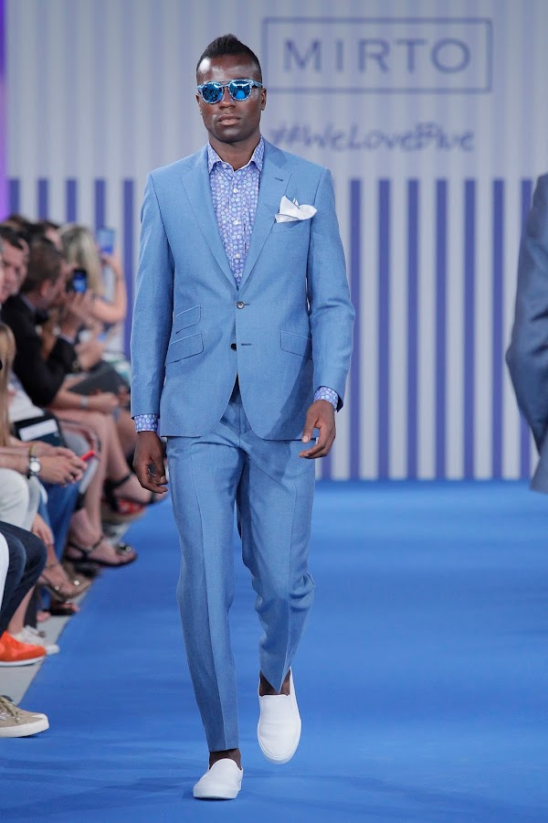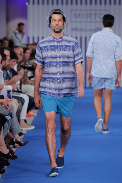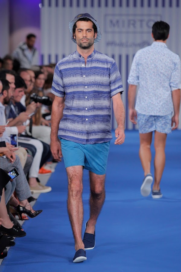 El azul más claro representa el frescor del día de una mañana de verano, el agua, el mar o el cielo de la ciudad. El azul oscuro bien puede representar la tarde y la noche estival. Desde una camisa, a unas bermudas, pasando por un polo, una americana, un traje, una corbata o un pijama, todo puede interpretarse en muchos colores. MIRTO se inspira para su desfile en las variantes e iteraciones cromáticas del color azul. Otros muchos más colores se cuelan cada verano en las colecciones de MIRTO y en los vestidores masculinos, pero el azul sigue siendo el color rey.