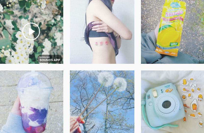 Predomina en su cuenta las imagenes con tonalidades frías que retratan partes de su vida diaria, comidas y un estilo que varía en en bohemio y casual.