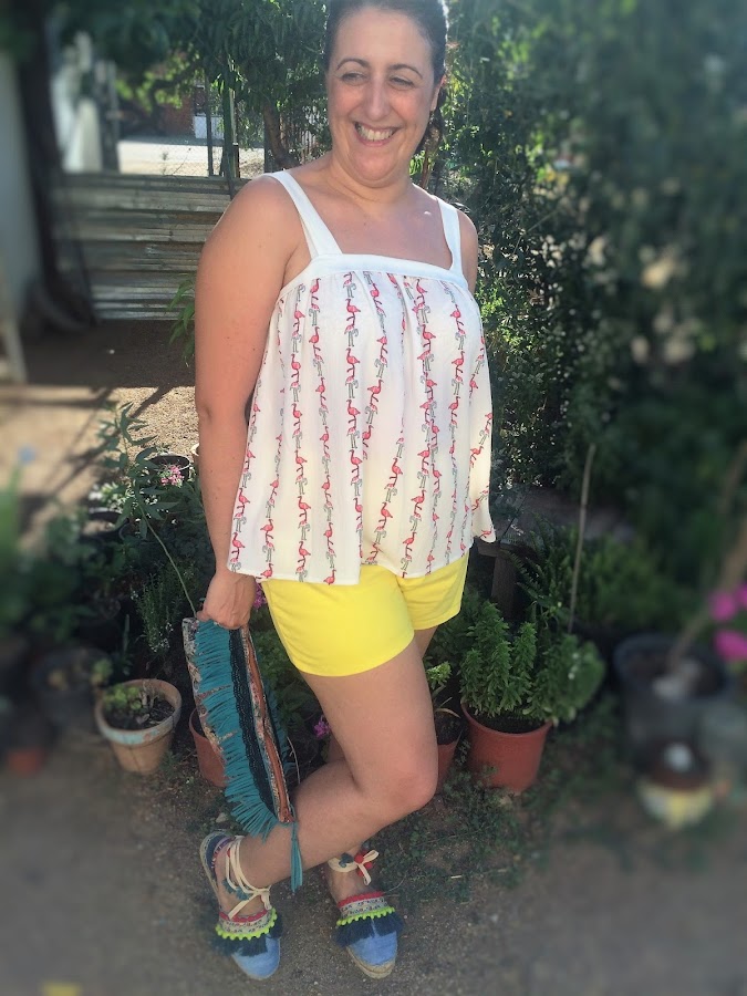 Como podéis ver son super coloridas y divertidas y elegí para enseñároslas un look colorido, con mi blusa de flamencos y mi pantalón amarillo chillón.