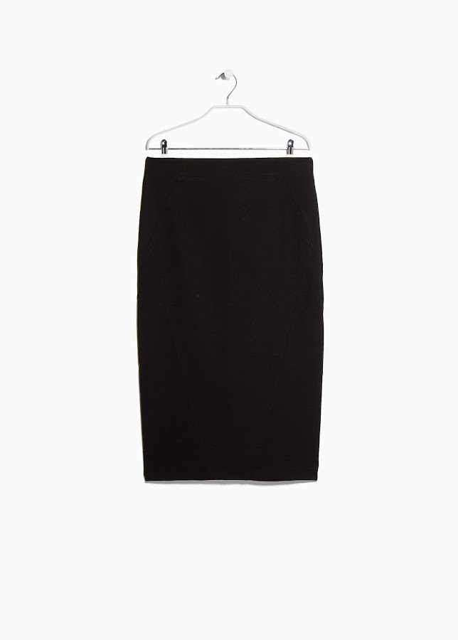 Falda negra de tubo de MANGO: Otro básico que necesitaba reponer en mi armario en su versión más de moda, el largo midi. Un toque elegante para cualquier look.