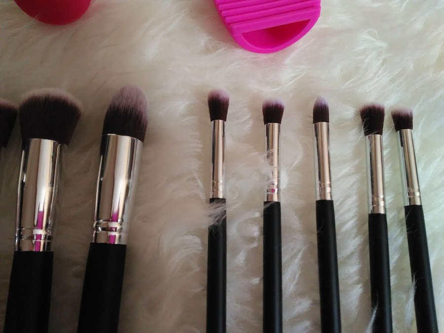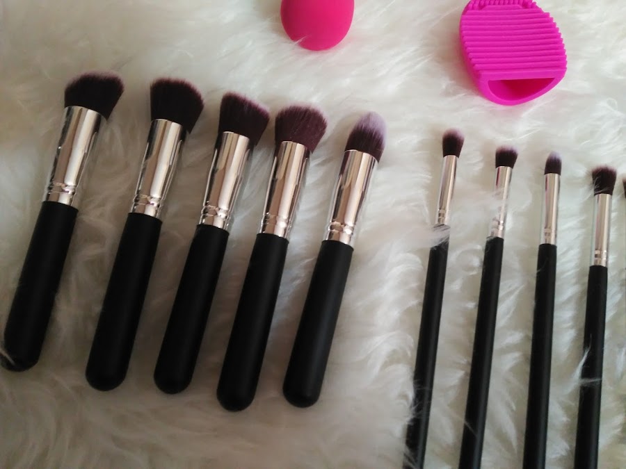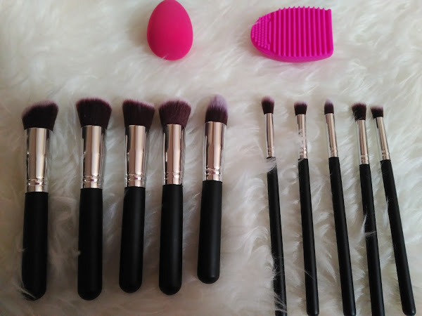 Es un set de lo mas completo, con diez brochas, cinco dedicadas al uso del rostro y las cinco restantes para la zona de los ojos, incluye una esponja y un limpia brochas de lo más útil.