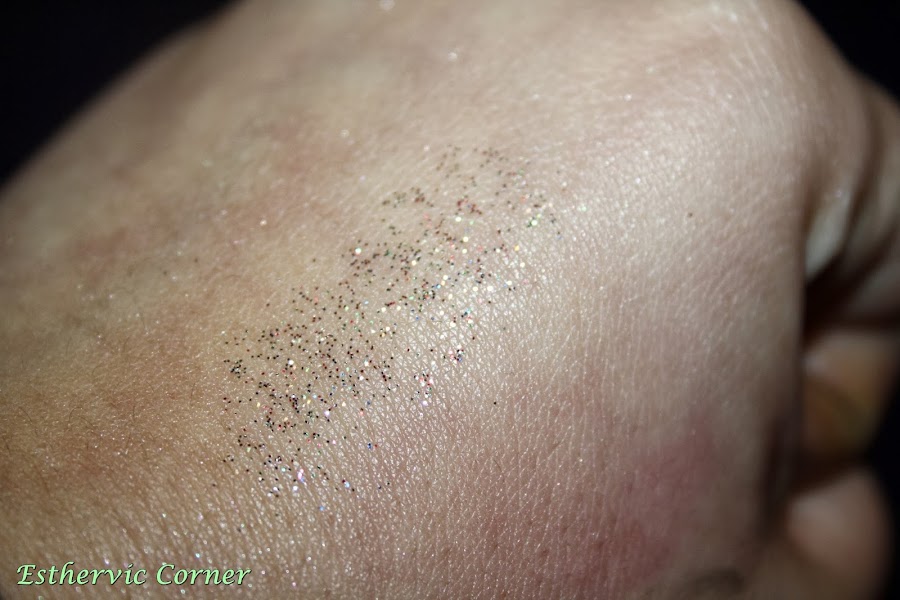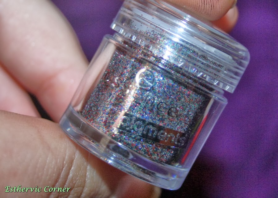 Pigmento 04 Broadway Starlet de Essence. Retiraban todos los pigmentos, y este me encantaba (bueno, me encantaban todos, pero mi cartera no daba para más), asi que elegi este, muy especial, para dar un toque festivo a cualquier look. Hay que usar prebase, asi que tambien me cogí la de Essence. Y aplicado queda asi: