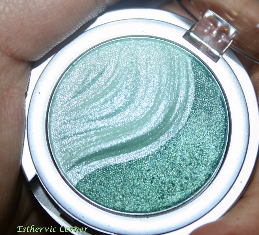 Sombra Duo 3D 01 Irresistible Green. Compuesta por dos sombras verdes muy pigmentadas, un verde bosque y un verde menta. Ambas son metalizadas, y quedan así sin prebase y de una pasada: