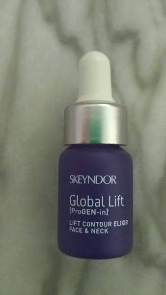 Es un serum elixir para cuello y rostro. Está basado en la tecnología ProGEN-in que lo que proporciona es un efecto lifting global. Está indicado para luchas contra lineas del envejecimiento haciendo efecto tensor en la piel. Como mi piel no tiene líneas de envejecimiento pronunciadas todavía, me decidí a probarlo usándolo en días alternos para ver textura y sensación en la piel al aplicarlo.