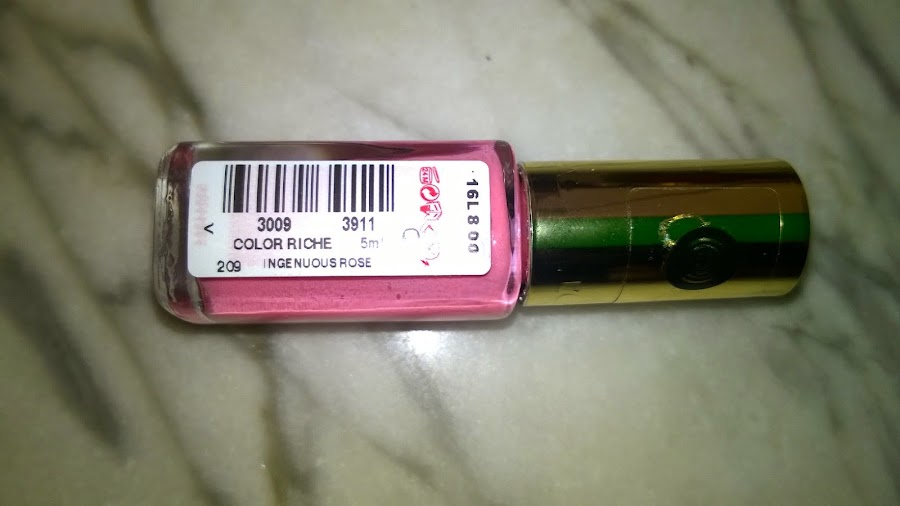 Este esmalte de uñas es de los nuevos colores de primavera que ha sacado L"Oreal. La colección es Color Riche. Me decidí a comprarlo porque iba mucho después de un rosa pastel. Al principio no confíe mucho en él, porque pensé será como todos que te lo aplicas y a los dos días ya ha saltado. Pero me equivoqué. Me dí dos pasadas como de costumbre y me duró una semana intacto. Al séptimo día ya empezó a saltarme en algunas uñas, pero bueno, una semana ya me parece un tiempo razonable y aceptable.