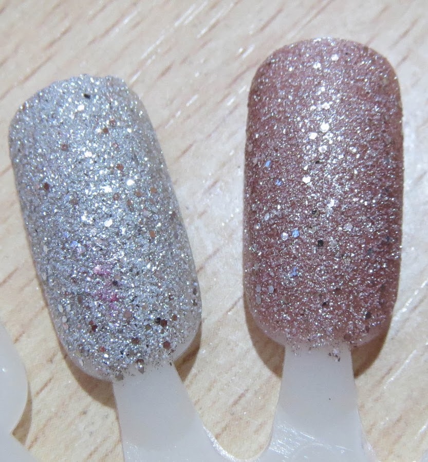 Ya por último os enseño estos dos porque no puedo elegir entre ellos. Me gustan los dos. Son de la gama Space Dust de Rimmel y son los tonos 007 Shooting Star (plateado) y 003 Aurora (Dorado). estos los combino con los esmaltes anteriores en una uña o dos y me chiflan. Cubren perfectamente la uña ellos solitos. brillan muchísimo y dan un toque espectacular a la manicura sin ningún tipo de esfuerzo. Desde que los tengo los estoy utilizando siempre (alternando de vez en cuando con el de flormar que os enseñé antes). Su duración es buenísima, a mi me aguantan en perfecto estado casi 2 semanas. El único contra es el acabado efecto "arena" que yo contrarresto utilizando un top coat. estos los podéis comprar en perfumerías y mercadona y su precio ronda el 1,90?.
