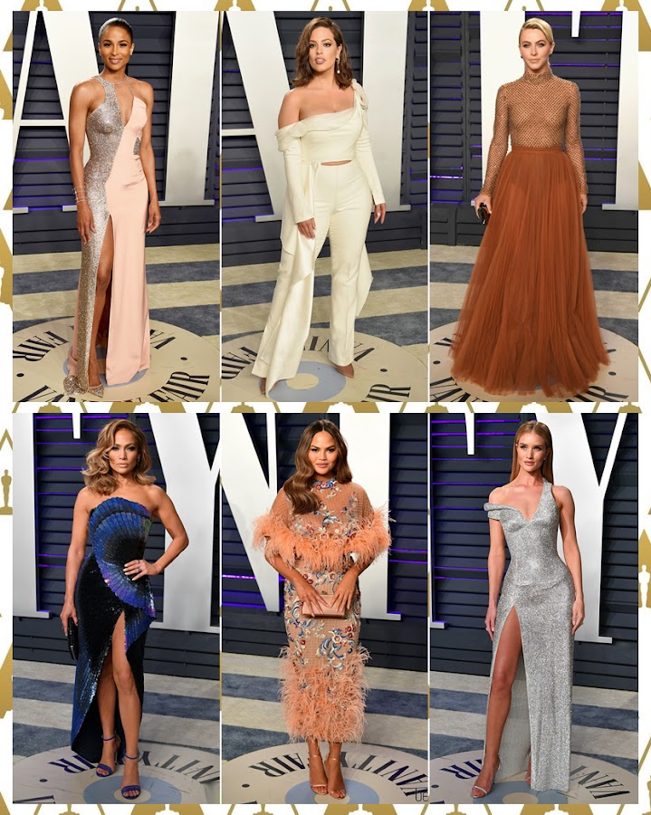Tras las actuaciones y las entregas de premios, llega la esperada fiesta que organiza la revista Vanity Fair y a la que acuden decenas de caras conocidas del panorama internacional. Los materiales metálicos y llenos de destellos de Ciara -de Versace- Jennifer Lopez -de Zuhair Murad- y Rosie Huntington -de Atelier Versace- el estiloso dos piezas en blanco roto de Ashley Graham, las sugerentes transparencias y la falda de tul de Julianne Hough y los divertidos bordados y las plumas de Chrissy Teigen -de Marchesa- son las elecciones que más me han gustado del evento.