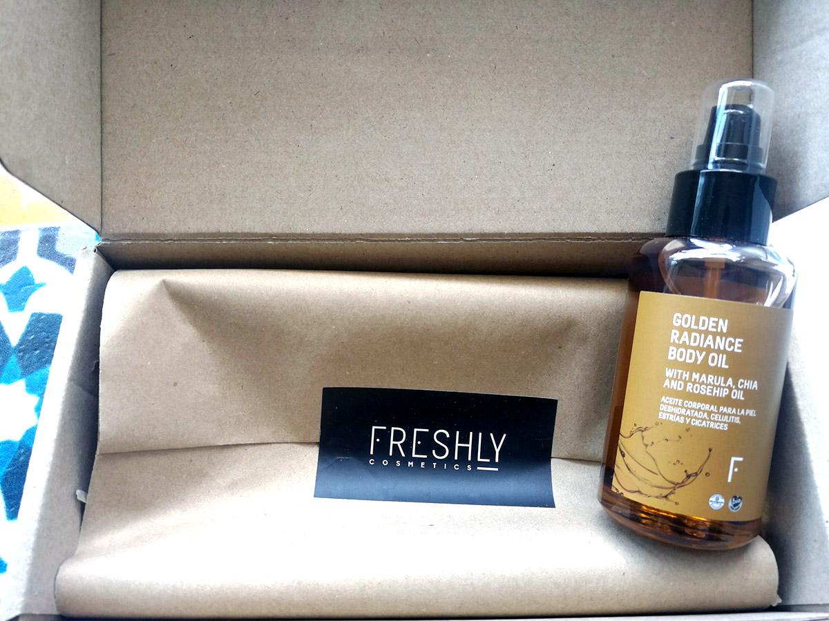 Freshly, la marca de cosmética natural, no deja de sorprenderme (después de la pasta de dientes ecológica pensaba que ya lo habían hecho todo). Ahora han lanzado el Golden Radiance Body Oil. Se trata de un aceite creada a base de 12 aceites vegetales para nutrir e hidratar, reducir la celulitis y mejorar la apariencia de estrías y cicatrices. Además de utilizarlo a diario, lo estoy aplicando en algunas cicatrices de guerra. Ya os contaré si funciona