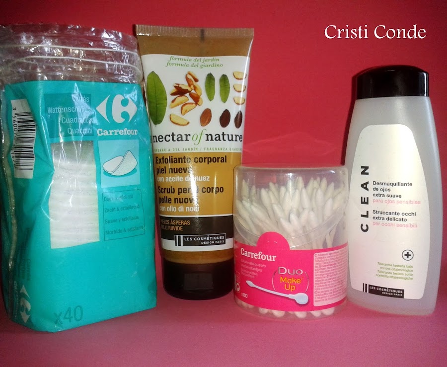 Algo de lo que estaba y estoy enamorada son los discos exfoliantes, el problema con este producto es que se supone que los señores de Carrefour lo retiraron del mercado hace algún tiempo pero me consta que en algunos Carrefour aun se pueden encontrar. Estos algodones tienen unos granulitos exfoliantes que exfolian de maravilla, mejor que mucho exfoliantes que e probado, los gránulos no se deshacen por lo que puedes exfoliarte durante un buen rato. Eso si para pieles sensibles no recomiendo estos algodones por que son bastante agresivos, cosa que me encanta jajaja. Cada paquete trae 40 algodones y su precio era de 2? o menos lo que era genial, a mi aun me quedan unos cuantos y cuando se acaben me va a dar algo.