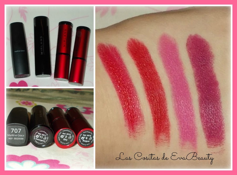 Los siguientes labiales son de la marca Mirlans, son mates y duran mucho en los labios, incluso comiendo y bebiendo, aguantan bastante.
