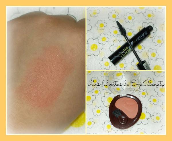 Se trata de la máscara de pestañas The Giant de Catrice y el Colorete de Deborah Milano en el tono 15 biscuit.