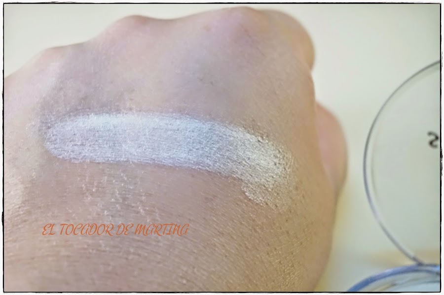 El motivo por el que no me gusta demasiado es muy simple, y es que cuando lo aplico y lo difumino prácticamente se pierde. Aun así le he encontrado un uso práctico, y es aplicarlo en el centro del párpado móvil, ya maquillado con otra sombra para dar un toque de luz, así es perfecto, porque como no hay que difuminarlo y simplemente aplicamos un toquecito con la yema del dedo, el resultado es perfecto.