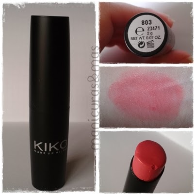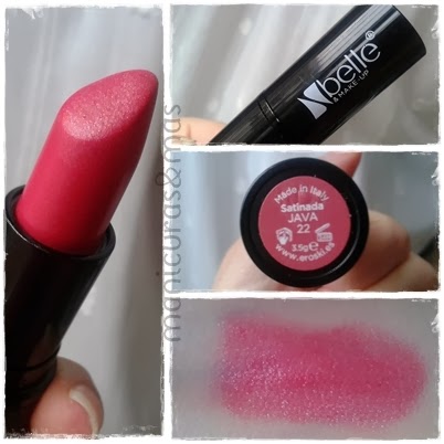 Es una preciosidad de color: rosa con subtono morado. Lástima que luego en los labios queda simplemente rosa (o por lo menos a mi me queda así) y el matiz moradito desaparece. Aún así me gusta bastante, ya que no le pasa lo que a otros labiales y es que a medida que pasa el tiempo va desapareciendo uniformemente; de este forma no quedan los típicos restos de labial en el filo del labio (horribles por cierto jajaja).