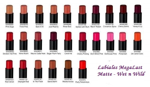 Y después, pues como todas sabréis, sus labiales son clones de los archiconocidísimos de MAC. Yo tengo unos cuantos de su colección Megalast, así que os cuento mi experiencia. No voy a poner "chuaches" porque no me fío de ellos, ya que influye la luz, la cámara, etc. Pero os los describiré con todo detalle.