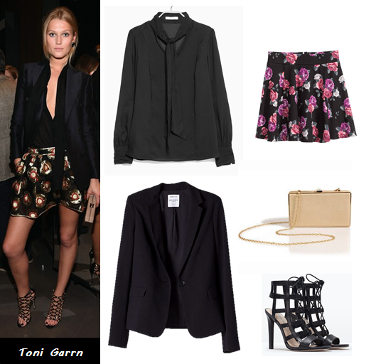 Toni Garrn: Un look de noche donde el protagonismo del negro se combina con un estampado floral que aporta el toque primaveral.