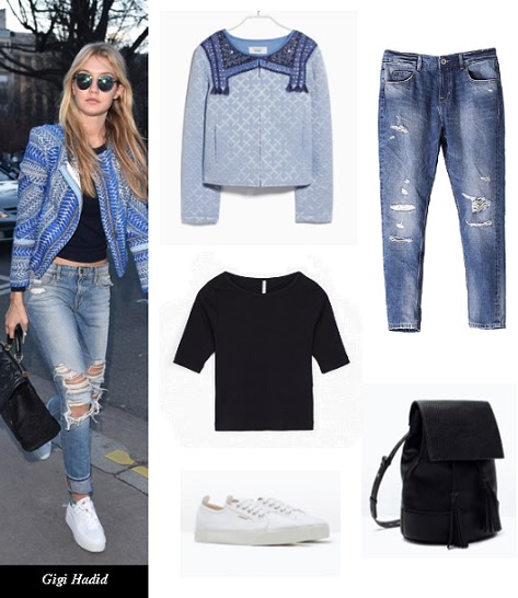 Gigi Hadid: Un look casual no debe nunca estar reñido con la sofisticación y el estilo. De la misma forma, aunque la combinación de múltiples tendencias no suele dar buen resultado en un único estilismo, en este caso la modelo acierta de pleno: boyfriend jeans, flatforms, crop top y chaqueta estampada...funciona!