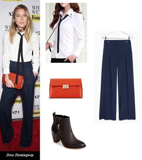 Dree Hemingway: Ya comenté en un post reciente que el pantalón de campana ha vuelto esta primavera, y no sólamente en su versión denim bootcut, sino que podemos llevar la tendencia al extremo con unos pantalones de corte palazzo.