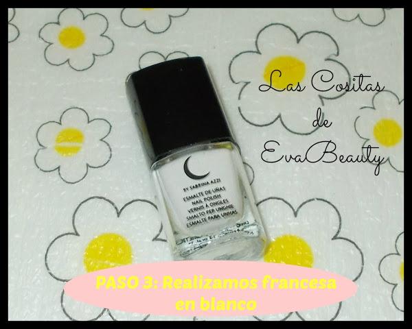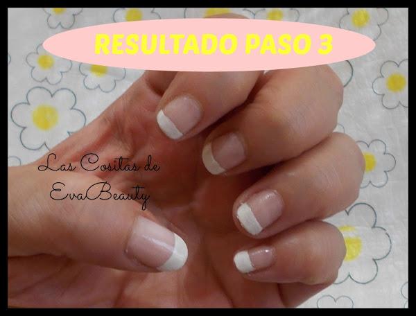 - El paso 3, sería realizar la punta blanca de nuestra manicura francesa y la dejamos secar bien.