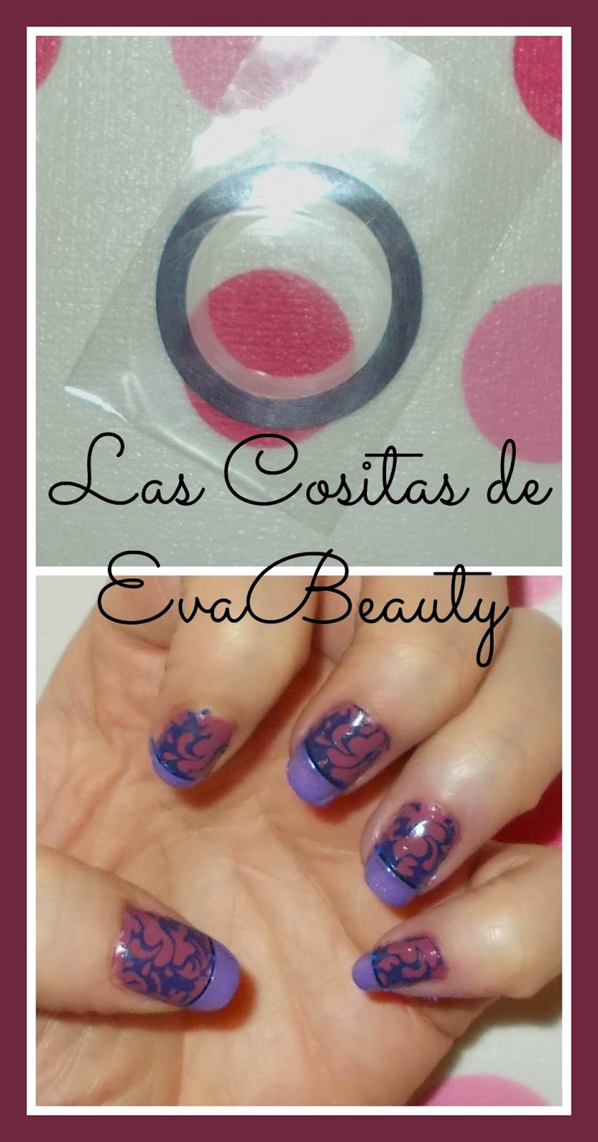 (Manicura francesa combinada con estampación y cinta por Las Cositas de EvaBeauty)