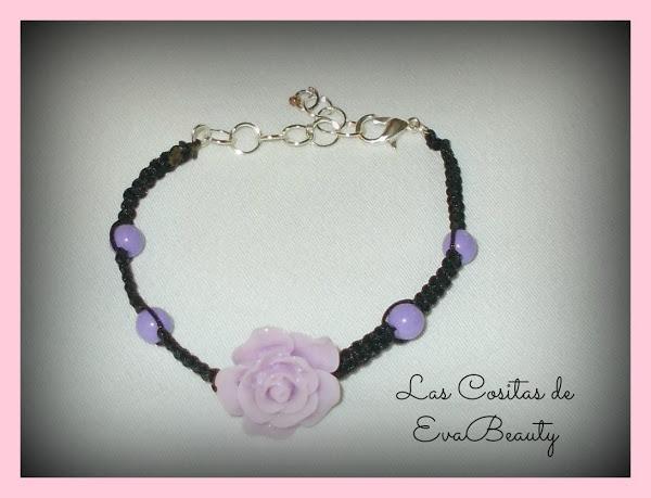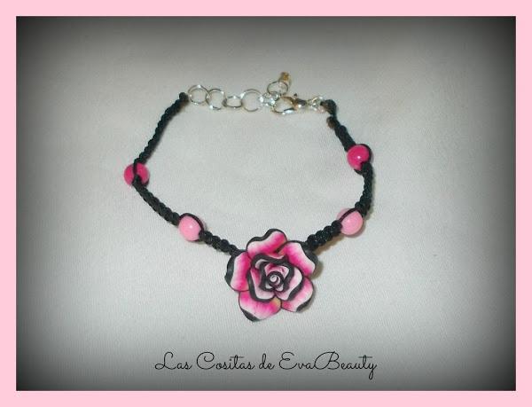 Y para terminar, os enseño ésta pulsera con flor en tonos rosas, fucsias y negro que puse en el centro de la pulsera.