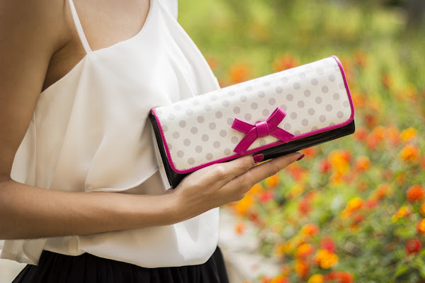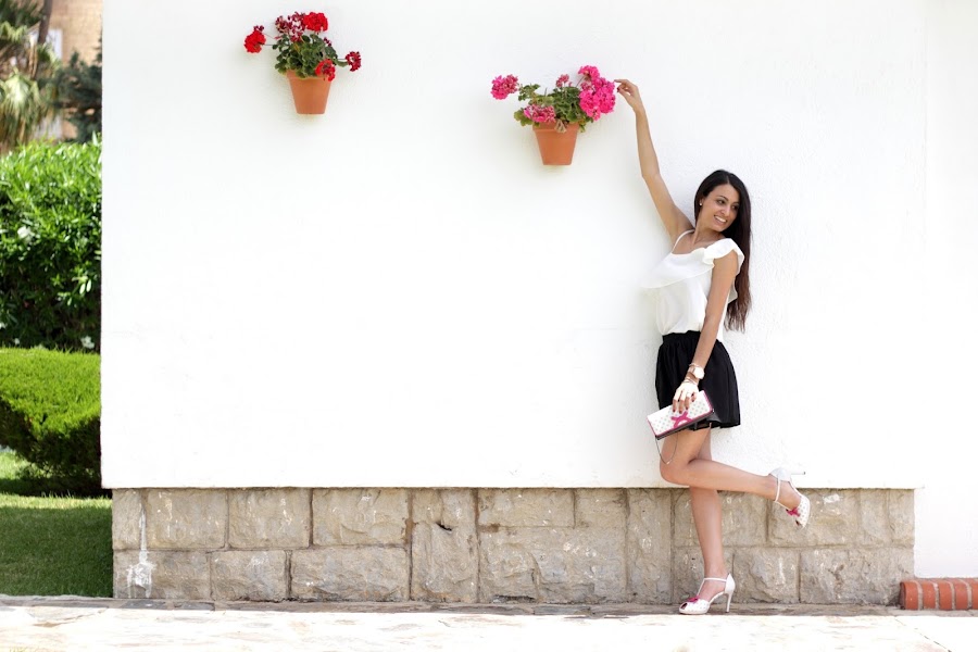 ¡Qué ganas tenía de estrenar mis nuevas sandalias personalizas con el logo del blog junto con mi nuevo bolso de CX! Ya me enamoraron con mis primeros stilettos florales y lo han vuelto a conseguir con esta maravillosa combinación a lunares y fucsia.
