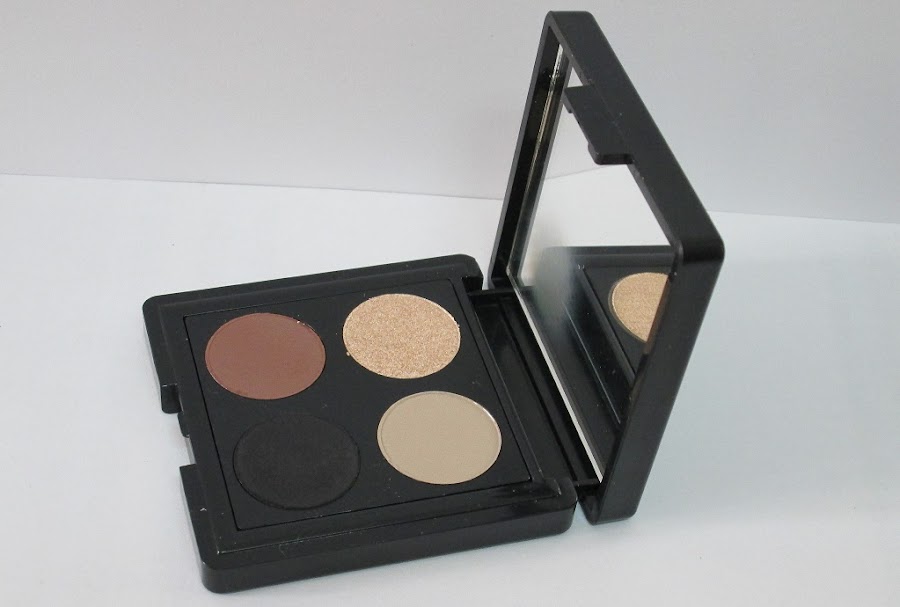 El cuarteto, se presenta en un envase pequeño, de plástico negro, muy bonito. Pero aún tener un tamaño bastante diminuto (puesto que tiene una medida de 6 x 6 cm y las sombras de ojos es como una moneda de 2 céntimos, aproximadamente), os garantizo que cunde un montón, porque las sombras tienen una pigmentación fabulosa, ¡os lo aseguro!, jejeje.