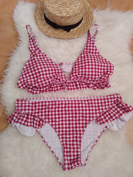 Este vikini me fascina no solo por su estampado sino por su forma queda precioso puesto, por que favorece mucho la forma que tiene, esos volantes en la parte de la pierna y la parte baja del sujetador si no por su colorido tan alegre.