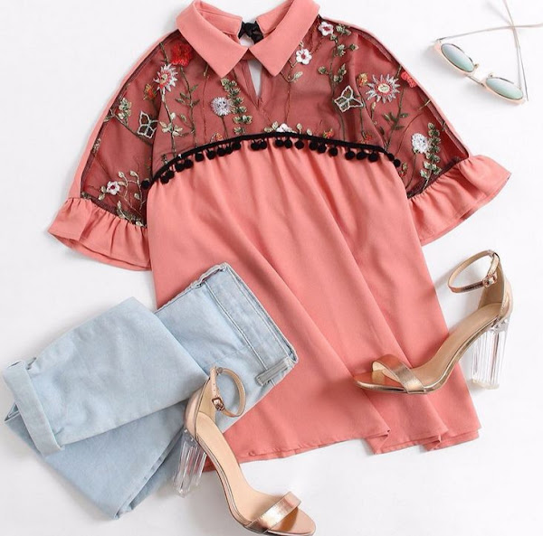 El lunes tengo una reunión, así que es buen momento para estrenar esta preciosa blusa bordada, con unos pequeños pompones.