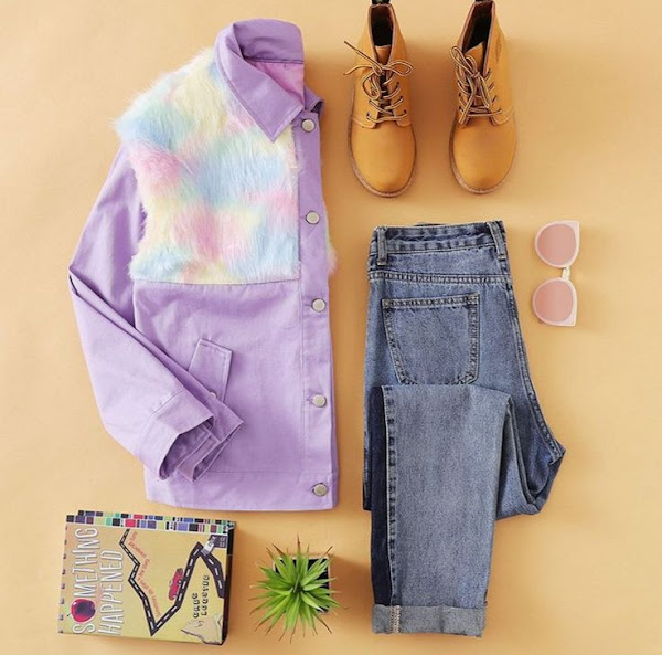 Lo más chulo de este outfit es esta chaqueta que combina pelo de colores es de lo más original.