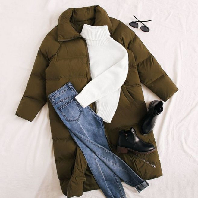 Los plumíferos una prenda básica que hay que tener cuando tenemos bajísimas temperaturas, no notarás en tu cuerpo las bajas temperaturas, debajo del plumífero he optado por un jersey de canalé de cuello alto en color blanco combinado con vaquero.