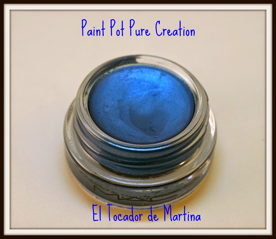Pure Creation pertenece a una colección de paint pots que salió hace ya dos o tres años, y no debí comprarlo, me dejé llevar por su color azul navy metalizado, pero sinceramente lo he usado muy poco, porque son pocas las veces que utilizo sombra azul, y sobre todo porque es un color que no queda homogéneo en el párpado, hace bastantes parches y ni de lejos queda el tono que vemos en el envase, ni mucho menos se deja apreciar el efecto metalizado. También he intentado utilizarlo como delineador, pero no desliza bien.