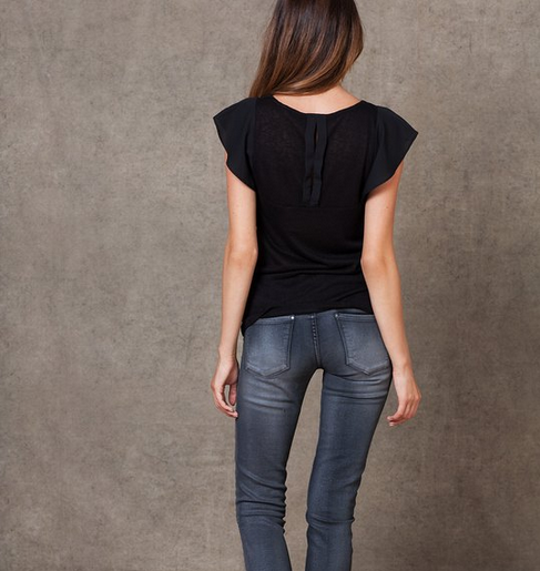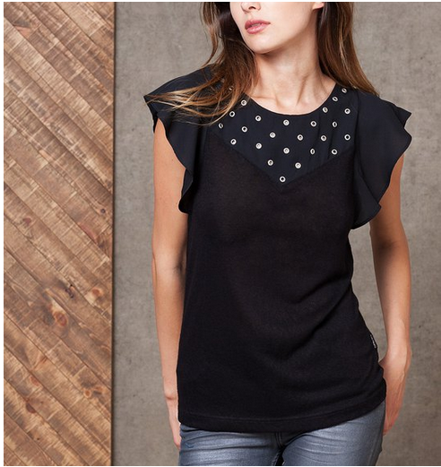 Sé que volveré a por esta camiseta, porque me arrepiento mucho de no haberla comprado cuando llegó a la tienda. Las mangas me parecen muy originales y, una vez más, tenemos los remaches presentes.