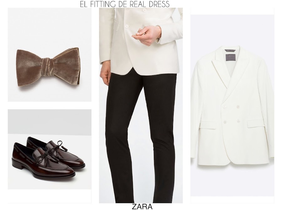 En cuanto a la vestimenta podemos decantarnos por un pantalón de vestir con un corte un poco más actual (tirando a pegado y no muy largo) acompañado de camisa blanca o negra entallada y como complemento ideal una pajarita, éstas muy de moda en terciopelo y mullidita. La chaqueta puede ser una a juego del pantalón o una también de terciopelo. En este caso presento dos look diferentes, seguidos de una secuencia de outfits con trajes o americanas de terciopelo combinadas con pantalones de vestir.
