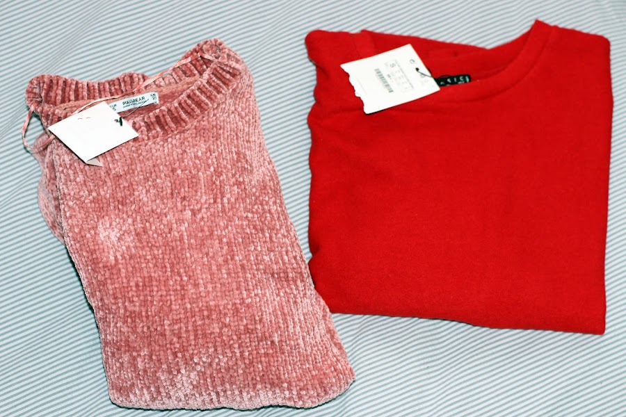 Como no, también había ropa entre los regalos. Me regalaron el jersey rosa de la izquierda de Pull&Bear, aunque es muy muy ancho y yo creo que lo voy a descambiar. El jersey rojo es de los básicos de Stradivarius y se que me lo voy a poner cada dos por tres! Me encanta!