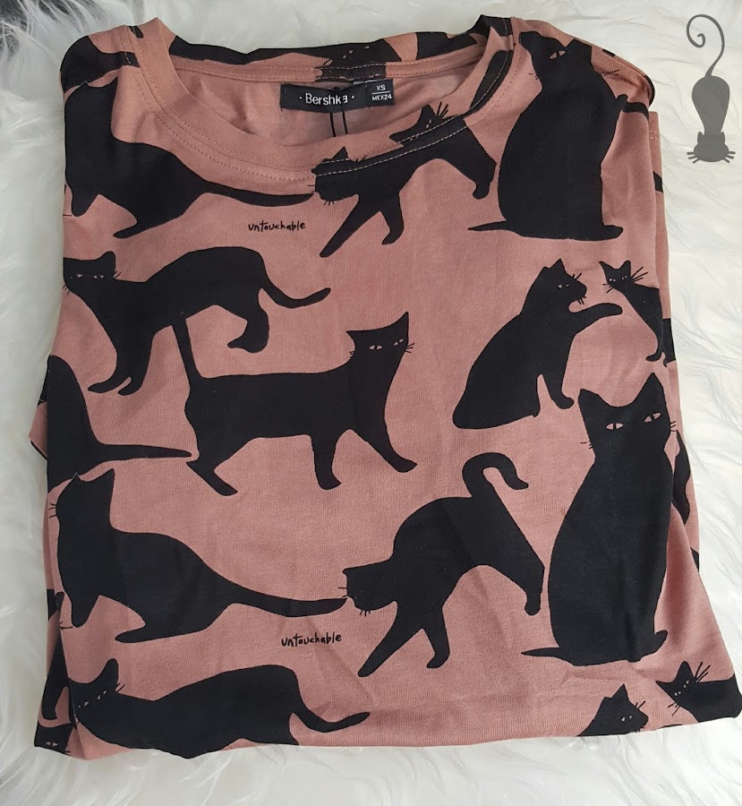 Camiseta de gatos oversize de Bershka también (7.99€)