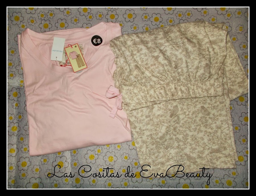 La camiseta es de manga larga, en tono rosa clarito liso, y a juego viene el pantalón, en tono beige, con estampado de buhos, ains me encantannnn, jajaja.
